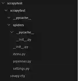 这里的scrapytest是工程名框架会自动在当前目录下创建一个同名的文件夹,工程文件就在里边。