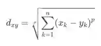 闵可夫斯基距离不是一种距离,而是一类距离的定义。对于 n 维空间中的两个点 x(x1,x2,...,xn) 和 y(y1,y2,...,yn) ,那么 x 和 y 两点之间的闵可夫斯基距离为: