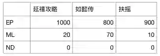 首先统计影片中出现古代官员职称的次数 EP(皇上、父王、臣妾…),再统计一下出现健身词汇的次数 ML(俯卧撑、抽动、抖动…),再统计一下出现现代词汇的次数 MD(打电话、打车、打胎…)