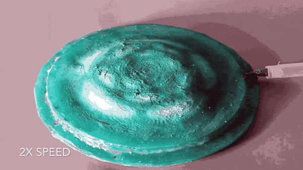 只要切割硅树脂的网络,就可以让其膨胀出所需的三维形状。研究人员可以在上面喷涂各种颜色,伪装成石头或是花朵。