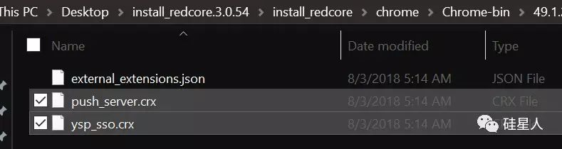 更诡异的是:下图可以看到,这个安装包里自带了两个兼容 Chrome 的插件(.crx 是 Chrome 插件的扩展格式):
