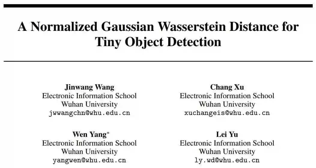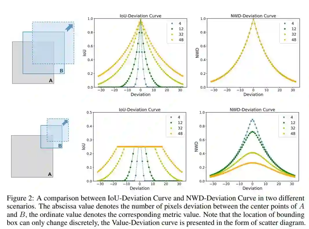 小目标检测是一个非常具有挑战性的问题,因为小目标只包含几个像素大小。作者证明,由于缺乏外观信息,最先进的检测器也不能在小目标上得到令人满意的结果。作者的主要观察结果是,基于IoU (Intersection over Union, IoU)的指标,如IoU本身及其扩展,对小目标的位置偏差非常敏感,在基于Anchor的检测器中使用时,严重降低了检测性能。