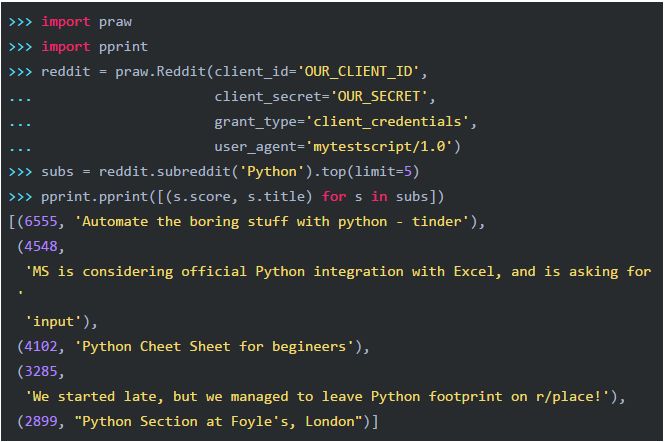 最后,如果不想自己写API的访问代码的话,可以使用Python客户端:https://github.com/praw-dev/praw