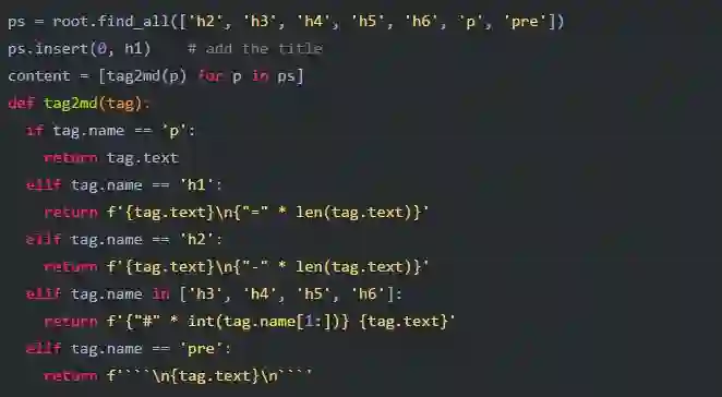 最后一步是将提取出的内容转换为易于阅读的格式。我选择了Markdown,不过你可以写出更好的转换器。