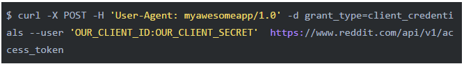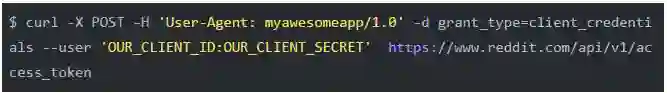 下个问题是如何使用App ID和Secret。由于我们只需获取指定SubReddit上最流行的新闻,而无需访问任何与用户相关的信息,所以理论上来说我们无需提供用户名或密码之类的个人信息。Reddit提供了“Application Only OAuth”(https://github.com/reddit-archive/reddit/wiki/OAuth2#application-only-oauth)的形式,通过这种方式,应用可以匿名访问公开的信息。运行下面这条命令: