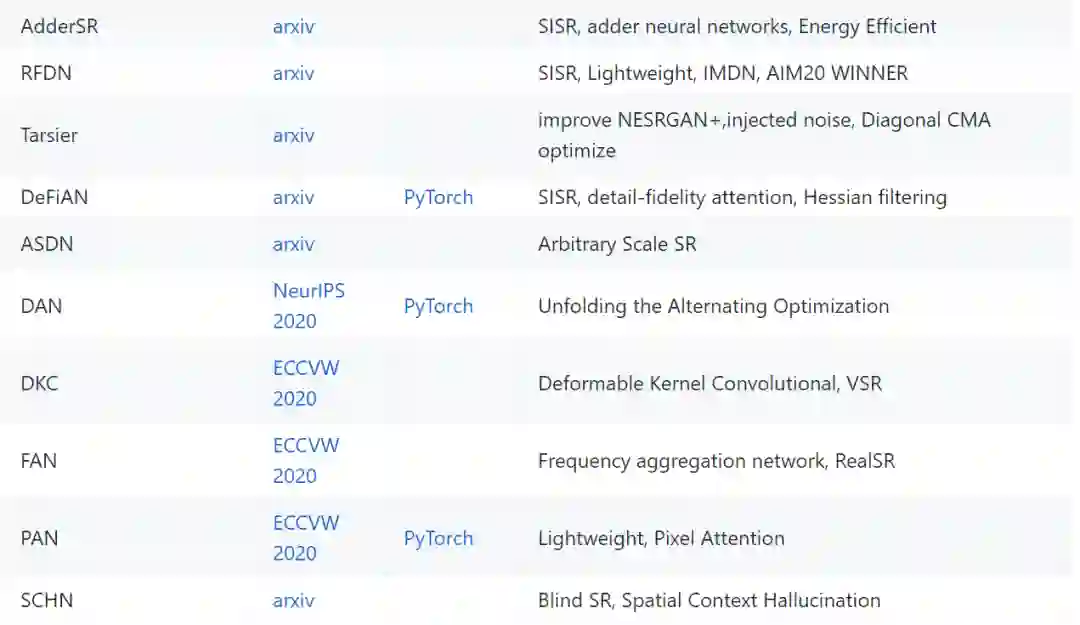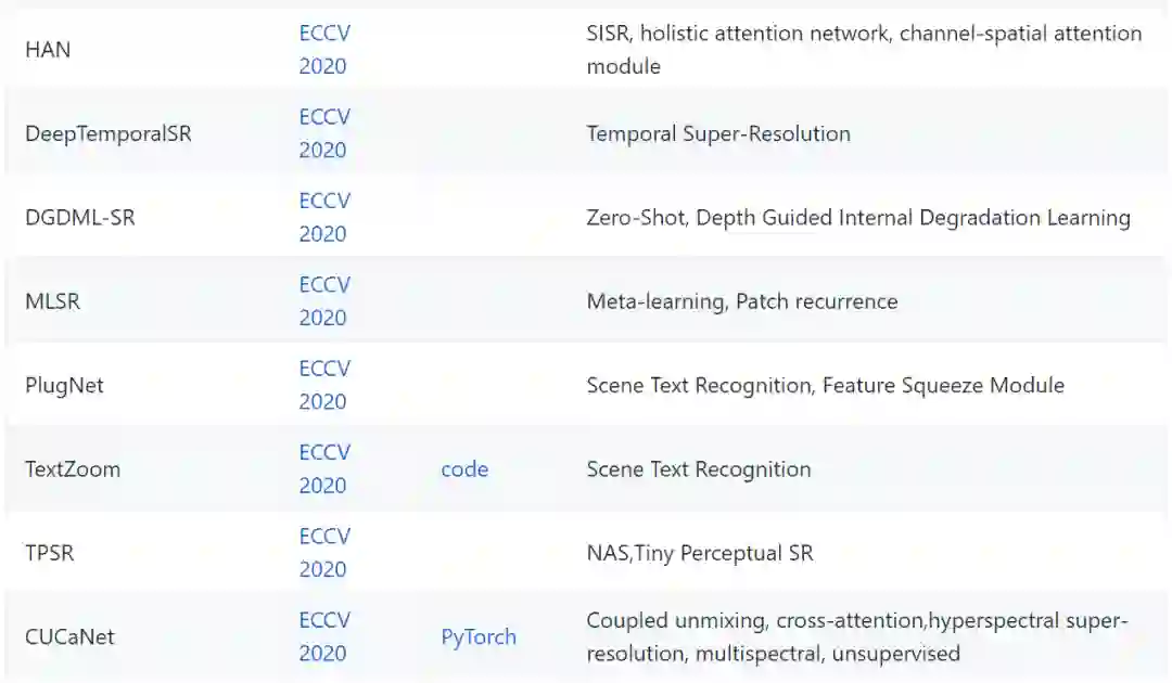 AAAI 2020、CVPR 2020、ECCV 2020、NeurIPS 2020和最新的SR论文都包含了