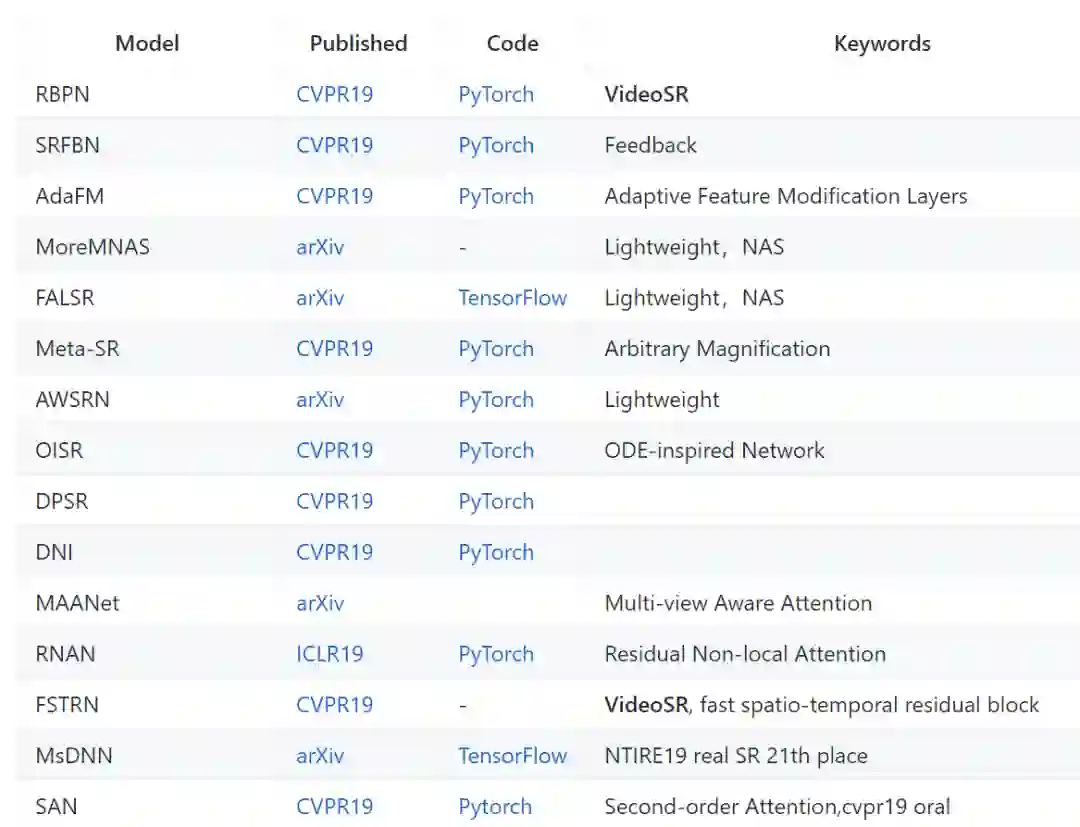 不少顶会上的SR论文都是基于下面的优秀开源项目所开发的,