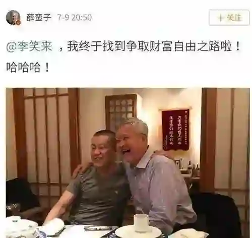 7 月 6 日,薛蛮子搂着李笑来,在微博上发出一张合照并附言: