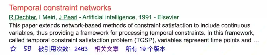 这篇论文发表于 1991 年,涉及的主题是上世纪八十年代的热门话题——时间约束。目前,该论文在谷歌学术上的被引用次数接近 2500。论文一作 Rina Dechter 被认为是「深度学习」一词的首倡者。