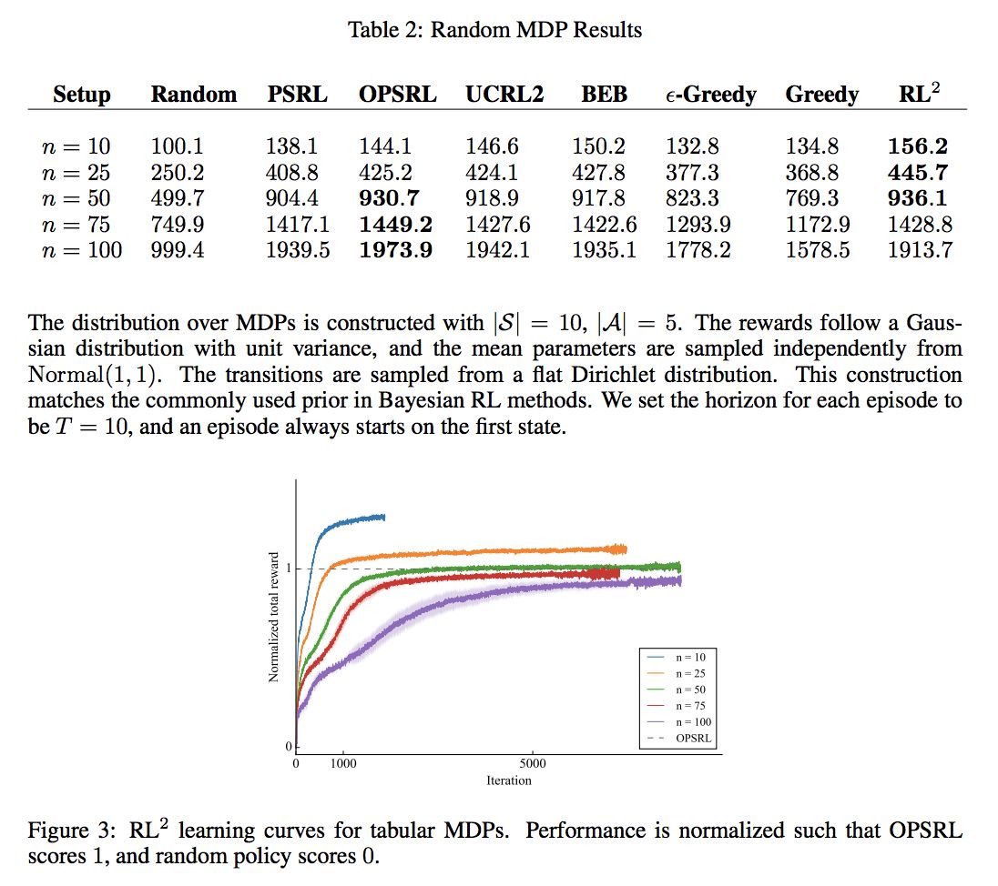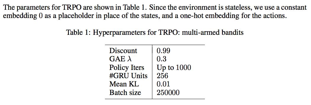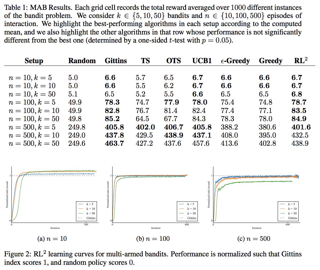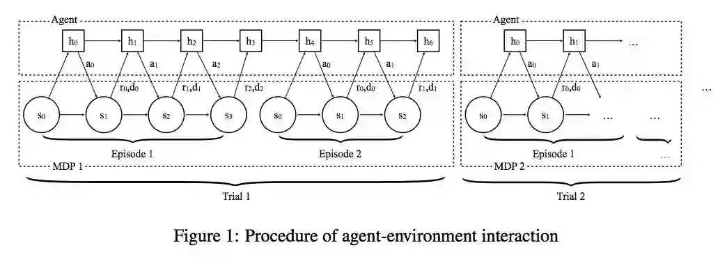 同时 RNN 的 hidden state 并不在每次 episode 开始后重置,而是保留,然后使用标准的 RL 算法来 training 这个 agent,那么这个 agent 应该能 capacity to perform learning in its own hidden activations。