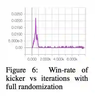 另外为了验证是否 over fitting 对手策略,这里做了一个实验就是踢球的环境,固定球训练,然后在测试的时候移动球,发现 agent 不能很好的泛化,只在球的一个位置好: