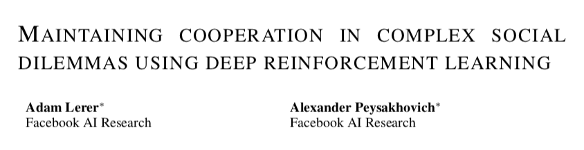 ■ 论文 | Maintaining Cooperation in Complex Social Dilemmas Using Deep Reinforcement Learning