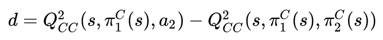 时,和当前采用 action 的 Q 的差值,如果当前 action 的 Q 值,则说明对手采用了竞争的 action,即为下式:
