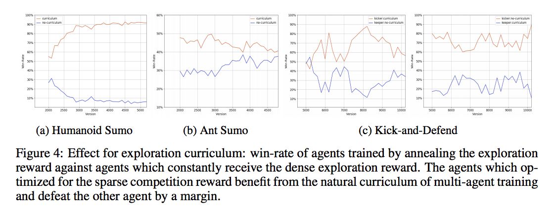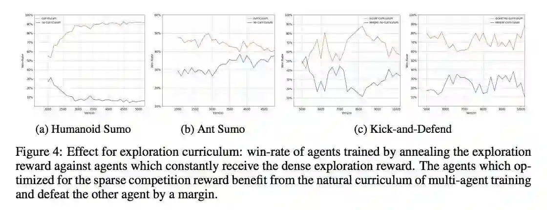 3. 主要想法:利用 self-play 的思想,产生合适的对手。同时利用额外的 reward 来帮助学习 basic action。