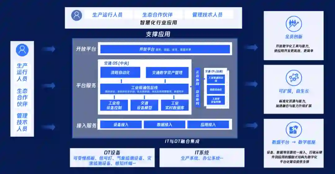交通 OS 兼备工业级稳定性与互联网敏捷性,将作为企业数字化转型的基座,联结适配的交通云底座及一系列面向交通场景的数字化助手产品,建立可升级、可扩展的应用体系。