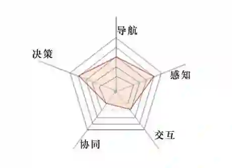 关于无人机自主性评价的方法除《无人机系统路线图 2005—2030》中采用的等级法外,还有双坐标轴法、三坐标轴法、查表法、公式法等。评定无人机的自主等级,实际上是评估无人机在完成特定任务过程中所呈现的自主能力。因此,可以将无人机的关键技术作为其自主性的评价项目,构建图 3所示的蛛网模型:从原点往外辐射出代表评价项目或关键技术的若干条轴,每个项目都有若干个表征技术成熟程度的等级,对于每一个无人机系统,将其在每条轴上对应的等级依次连接起来,即可用类似蛛网的纬线评价该无人机系统的自主性。