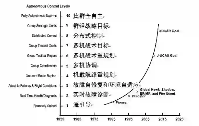 日益复杂的任务与环境决定了无人机系统必须具备很高的自主性。无人机的自动控制与自主控制的主要区别在于:自动控制是系统按照指令控制执行任务,而系统本身并没有决策与协调的能力;而自主控制则需要无人机自身在必要的时刻做出决策。因此,无人机自主控制应该使无人机具有自治的能力,必须能够在不确定对象和环境条件下,在无人参与的情况下,持续完成必要的控制功能。自主性、机载信息获取、传输及其应用能力将是未来无人机在动态战场环境下完成复杂任务的关键。