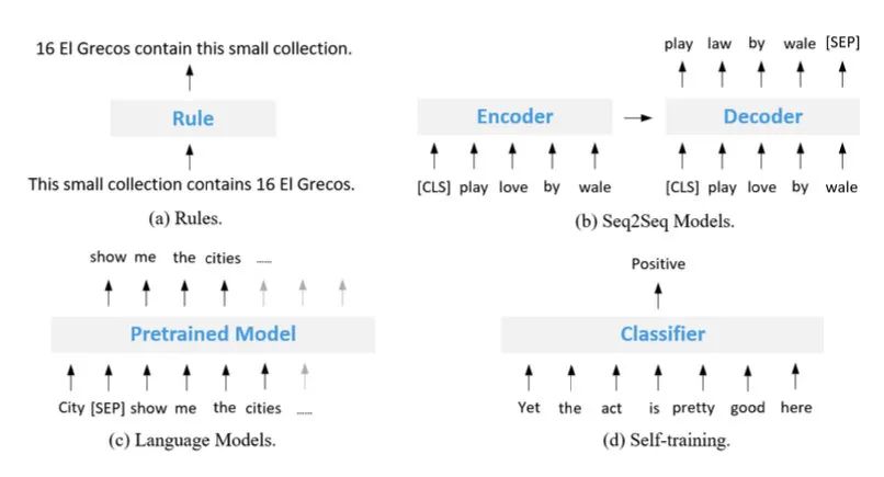Sampling是指从数据分布中采样出新的样本,不同于较通用的paraphrasing,采样更依赖任务,需要在保证数据可靠性的同时增加更多多样性,比前两个数据增强方法更难。作者整理了4种方法: