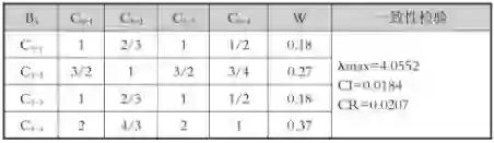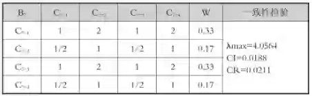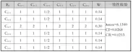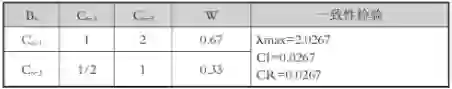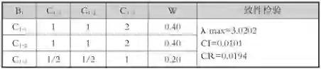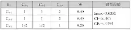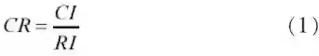 在得到C.I与R.I的数值后,便可进行特征数据的一致性检验运算,公式如下: