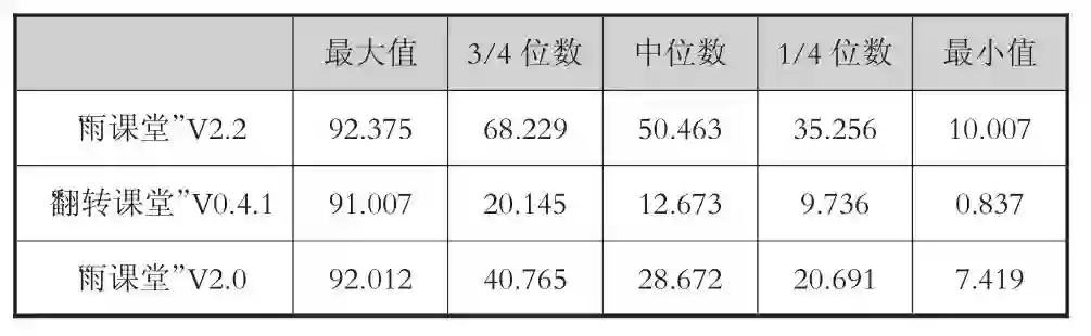 注:第一组为 “雨课堂”V2.2数值(部分);第二组为 “翻转课堂”V0.4.1;第三组则为“雨课堂”V2.0。