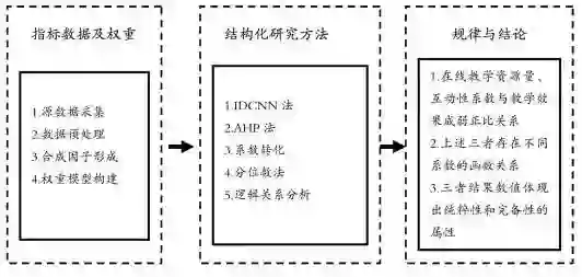 具体地:(1)每种智慧课堂的教学效果,均使用模糊综合的方法实现了量化;且其每个核心要素一级、二级指标的作用大小,也都运用多极化矩阵的方法,并使用权重的指标实现了数值化。这有利于针对性地优化智慧课堂结构设计,从而为提升智慧课堂的教学效果精准发力。(2)结构化方法证实了在线教学资源、互动性行为及教学效果三者,两两之间,存在弱正比例线性逻辑关系。(3)并非所有在线资源都会正向影响师生间的互动性行为(系数);也并非所有的互动性行为均正向决定智慧课堂的教学效果。而且它们的贡献程度也是大相径庭,分别对应着不同系数的函数关系。(4)实证结果通常符合纯粹性属性,即三者之间反映出较为明显的一致性和相承性,并体现了比较严格的弱正比例逻辑关系;从完备性属性来看,研究结果也满足大数定理规律。