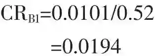 CRA=0.0296/1.36=0.0218;CRB2=0.0268/1.26=0.0213;CRB3=0.0101/0.52=0.0194;CRB4=0.0268/1.26=0.021;CRB5=0.0184/0.89=0.0207;CRB6=0.0267;CRB7=0.0188/0.89=0.0211。