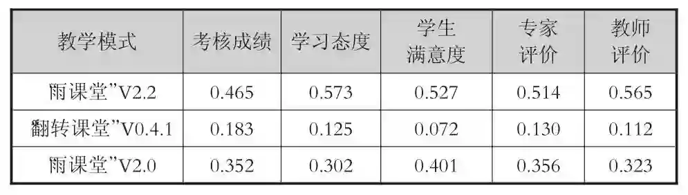 显而易见,教学效果和互动性系数对应的数值,满足以下规律或结论:(1)如果师生间互动性系数值越高,那么教学效果就越好;(2)从教学效果的具体指标数值来看,“雨课堂”V2.2的教学效果,明显高于其它两种教学模式,这恰好反证了只有高水平的互动性行为,才能更高效地正向影响智慧课堂的教学效果。