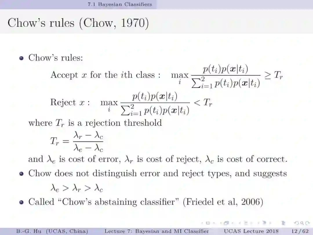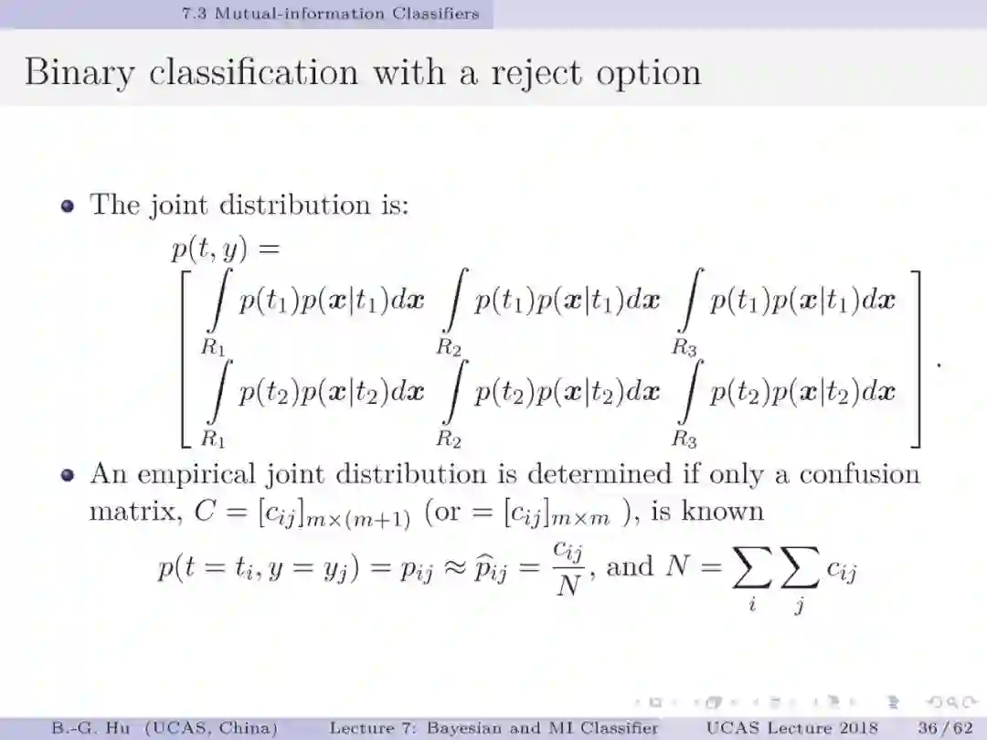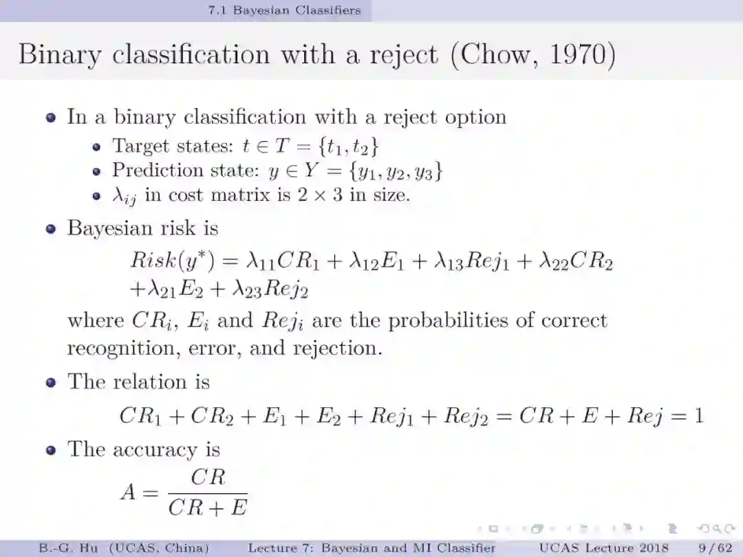 国科大UCAS胡包钢教授《信息论与机器学习》课程第六讲:信息指标与拒识分类评价