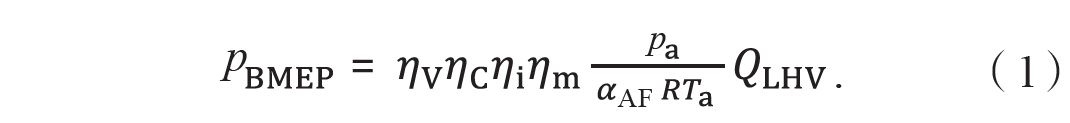 其中:ηV 为充气效率,ηC 为燃烧效率,ηi 为指示热效率,ηm 为机械效率,αAF 为空燃比,Pa、Ta、R 分别为参考状态下的气体压力、温度及气体常数,QLHV 为燃料低热值。