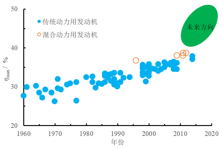 未来汽油机热效率(特别是实际运行时的热效率)将有大幅度提高,通过多种技术手段的应用,商业化产品有望实现 45% 的热效率。