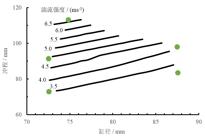 图 14 发动机冲程、缸径与缸内湍流强度的关系 [21]