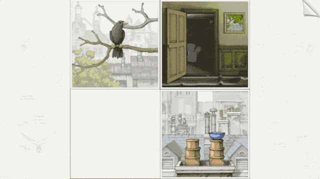 在 Gorogoa 的世界中,没有对白和提示,一切全靠你的想象并结合现实中的经验。在拼接零碎画面、探索游戏的过程中,我们会渐渐发现游戏中被打乱的时间线,潜藏在背后的故事也慢慢浮现。让人惊呼这巧妙玩法背后竟然还有着如此惊艳的灰色童话世界。