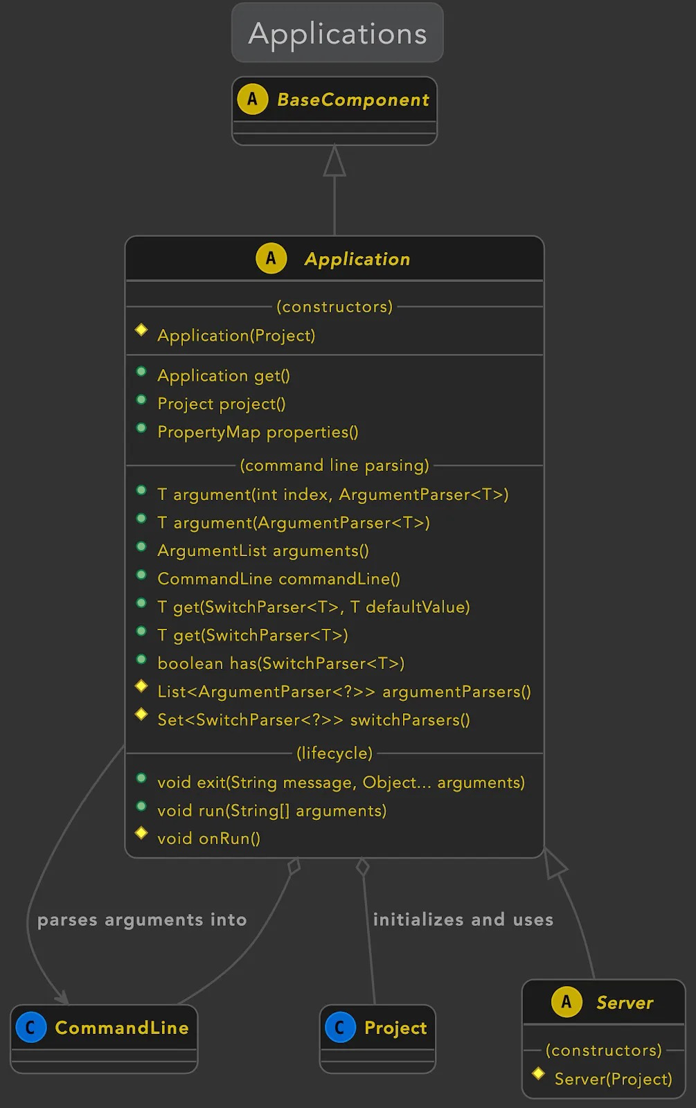 public class MyMicroservice extends Server{public static void main(final String[] arguments){new MyApplication().run(arguments);}private MyApplication(){super(MyProject());}@Overrideprotected void onRun(){[...]}}