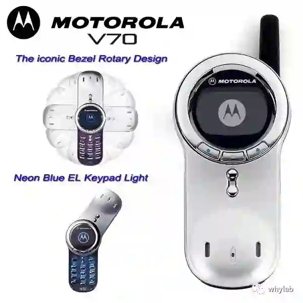 相信很多人认识摩托罗拉都是从这个时候开始,摩托罗拉在这个时代最具代表性的作品无疑是 V70 和 V3 。看惯了现在统一的刘海屏,再看看 V70 ,这独特的设计和精美的外观简直就是艺术品一般的存在。