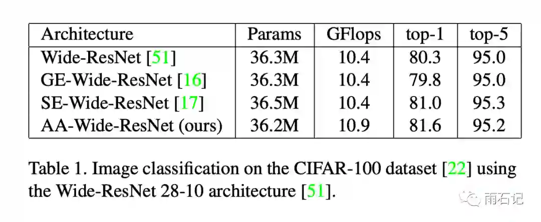 其中在Cifar100上,对Wide-ResNet-28-10结构进行了增强,在每个残差块的第一个卷积层用了注意力增强。