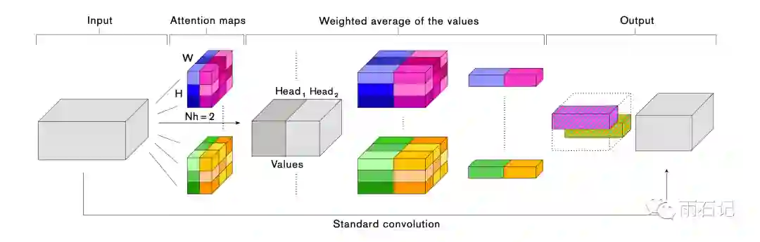 参考文献[1]提出了一种基于二维相对位置的注意力机制,只用这种机制可以达到与卷积类似的效果,与卷积混用则能达到更好的效果。