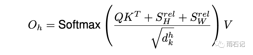 注意到,这里分别为x维和y维定义了一个相对位置编码。因而,计算attention的公式就变成了