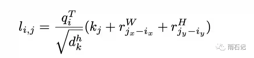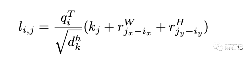 更具体的,位置(ix, iy)和位置(jx, jy)之间计算注意力的logits的时候,公式如下: