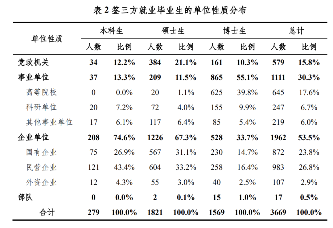 报告数据显示,清华学子进入体制内的比例明显增加。清华大学 2021 届签三方就业毕业生总数为 3669 人,其中去往党政机关、事业单位、国有企业的占比分别为 15.8%、30.3%、23.8%,合计占比为 69.9%。也就是说,近七成清华毕业生进了体制内。