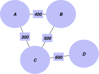 想象身处在沃尔玛商店,我们知道了各个过道之间的距离,我们希望为从过道 A 到过道 D 的客户提供最短路径。