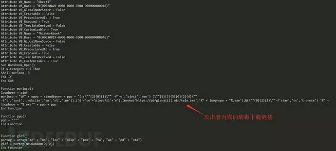 图:word中内嵌恶意宏代码,远程下载恶意程序