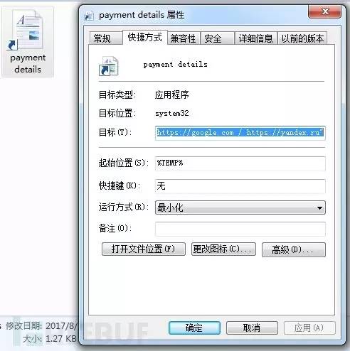 附件即为压缩后的样本,解压之后是一个单独的lnk文件,具体信息如下图