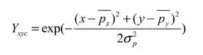 关键点热图:这里的关键点热图与CornerNet类似,只是这里只预测一个中心点的位置。对于标签的处理,CenterNet将标签进行下采样,然后通过下式的高斯核函数分散到热图上。