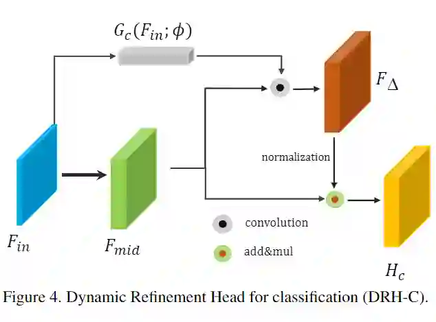 模型训练是从特殊到一般的过程,而推理是从一般到特殊的过程。但是,几乎所有方法都遵循stationary paradigm,并且无法基于样本进行灵活的推断。Dynamic filters 动态滤波器是一种简单而有效的方法,可以使模型在不同样本之间进行转换。现有的方法通过Dynamic filters 重新了组合特征,并取得了不错的结果。但是,目标检测器有两个不同的任务,即分类和回归。对于分类任务,关键是完善特征embedding以提高其可分辨性。但是,对于回归问题,需要直接优化预测值。因此,本文针对以上两个方面提出了两种版本的动态优化head(DRH)。