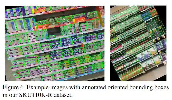 (3)重新标记数据集并得到SKU110KR,该数据集包含定向bounding box的准确标注,以促进对定向和密集物体的检测。