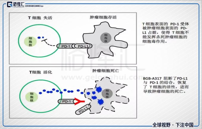 我们知道在肿瘤的微环境中,淋巴细胞表面会表达PD-1,而肿瘤细胞则表达其配体(一般是PD-L1或PD-L2;而癌细胞逃避免疫系统摧毁的一种方法正是通过其配体联接到T细胞的PD-1蛋白上,当癌细胞的配体与PD-1连接以后,T淋巴细胞就不能够发现肿瘤细胞、也不能向免疫系统发出攻击肿瘤的信号,这也就是我们所说的T细胞失活进而影响了免疫细胞对肿瘤细胞的免疫反应)。