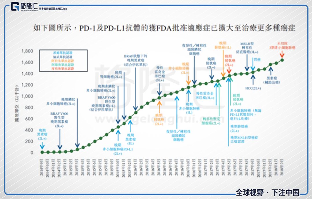 以已经在国内上市的PD-1单抗O药(Opdivo)和K药(Key truda)为例,二者之所以能在短短三年时间就在全球市场合计实现近100亿美元的年销售额,远超其他几个PD-L1单抗的市场规模,而且现在仍然有很高的增速,主要就是相比其他免疫治疗药物,O药和K药能不断获批新的适应症。