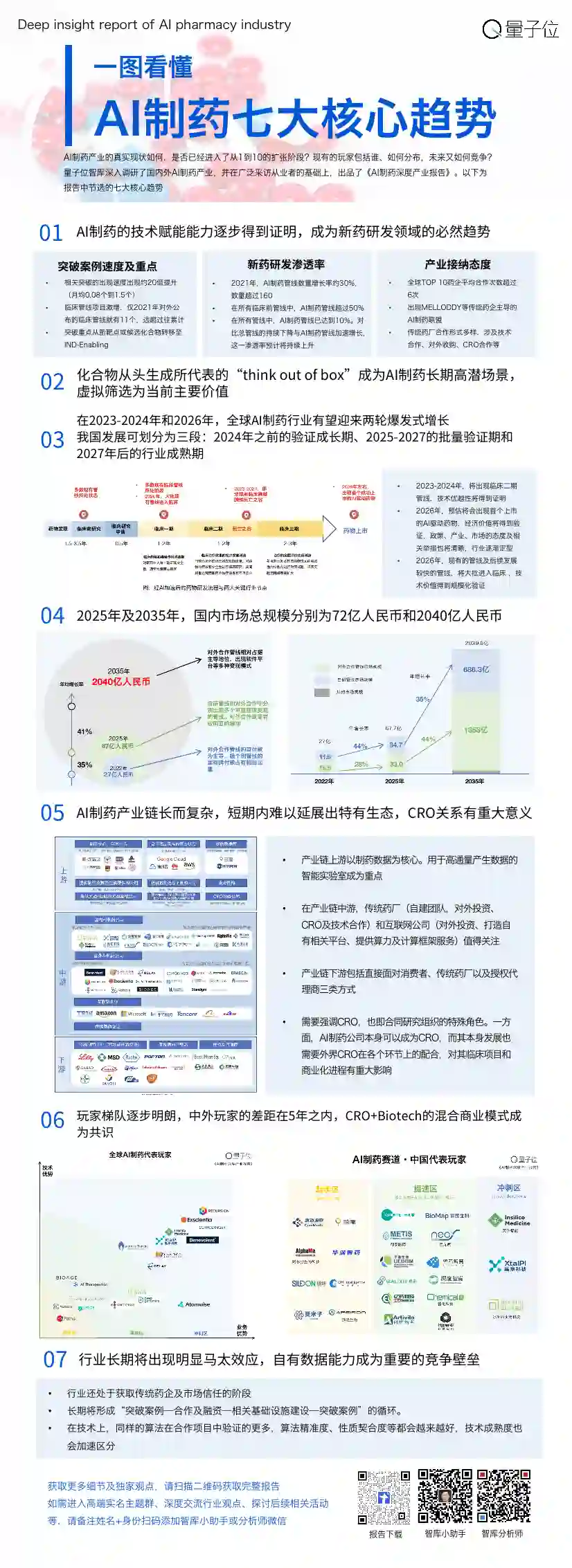 这张图中详细解读了这份报告中的AI制药行业七大核心趋势: