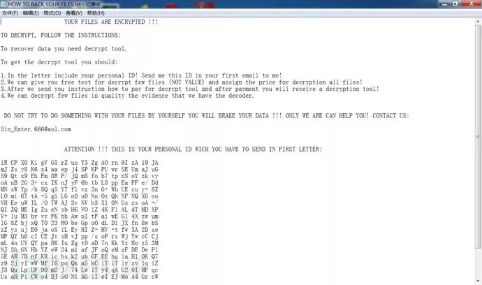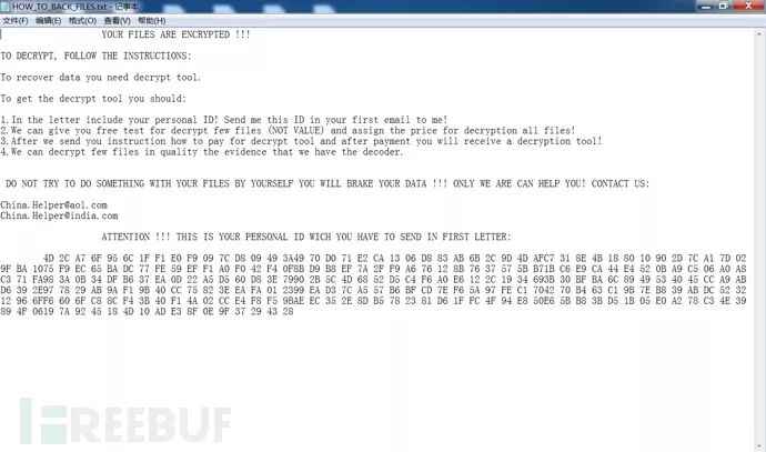所以Globelmposter3.0勒索病毒俗称"十二生肖勒索病毒",生成的勒索信息文件变成了文本文件HOWTOBACK_FILES.txt,如下所示:
