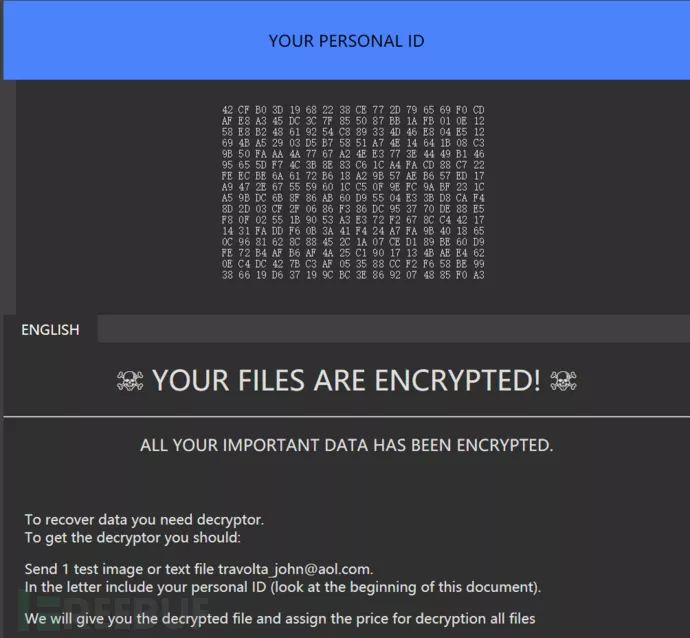 Globelmposter勒索病毒首次出现是在2017年5月份,主要通过钓鱼邮件进行传播,2018年2月国内各大医院爆发Globelmposter变种样本2.0版本,通过溯源分析发现此勒索病毒可能是通过RDP爆破、社会工程等方式进行传播,此勒索病毒采用RSA2048加密算法,导致加密后的文件无法解密。